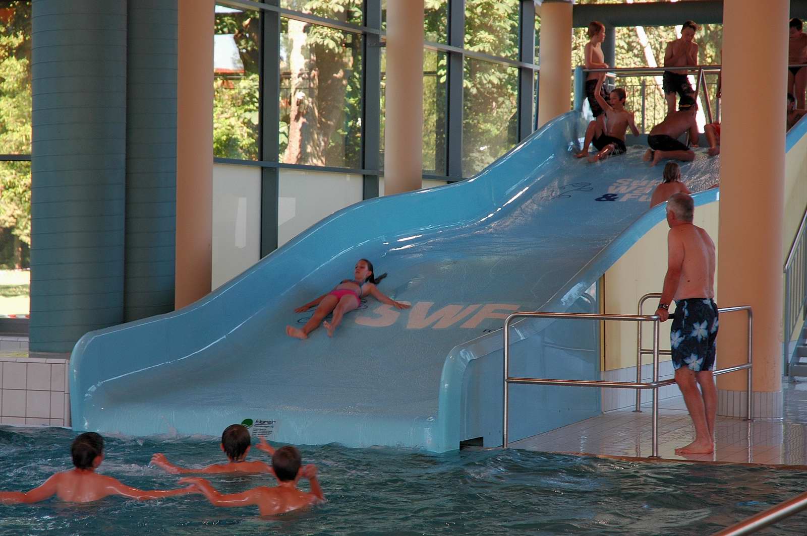 [ Ganzjahresbad | Erlebnis - Hallenbad | Freibadpark | Sauna - Landschaft | Restaurant | Bistro | Strand- u. Sauna - Bar ]